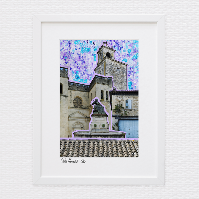 Mes images sont réalisées à partir de mes propres photographies numériques. Je découpe, j'assemble, je colorise, je dessine. Ces images sortent de mon imaginaire coloré et déluré. Ces images vous sont ensuite présentées sous forme de tirage ou de carte postale. J’ajoute à mon travail une dimension écologique en travaillant uniquement en circuit court.